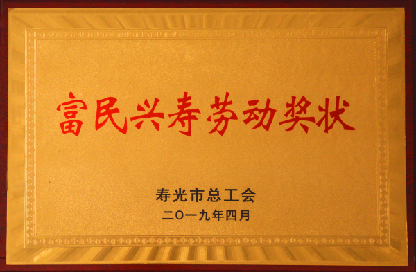 公司被授予“壽光市富民興壽勞動(dòng)獎(jiǎng)狀”榮譽(yù)稱號(hào)